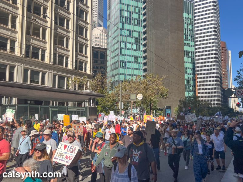 Like millions of others, we at CatSynth attended our local No Kings protest. It was a beautiful day in San Francisco, and people were in a joyous and defiant mood. I made a short video with highlights from the march up Market Street.