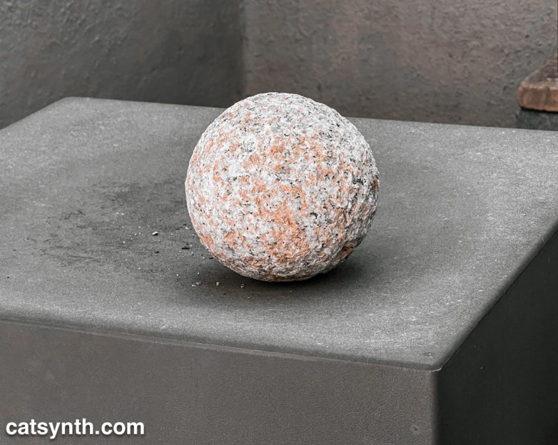 Once again, the relative emptiness other than the sphere and cube holds the focus, and indeed works as an object for a contemplation meditation. The texture of the sphere and the bit of shmutz on the surface of the cube provide one level of additional qualities to observe.