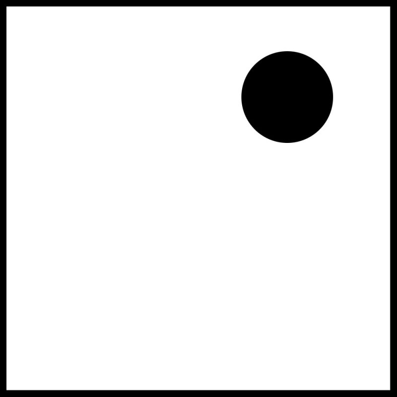 We have two basic shapes. A small circle inside a larger square. The circle is off-center. It makes the white space inside the square seem larger than it would be if the circle were centered, even though the area of the space is exactly the same.