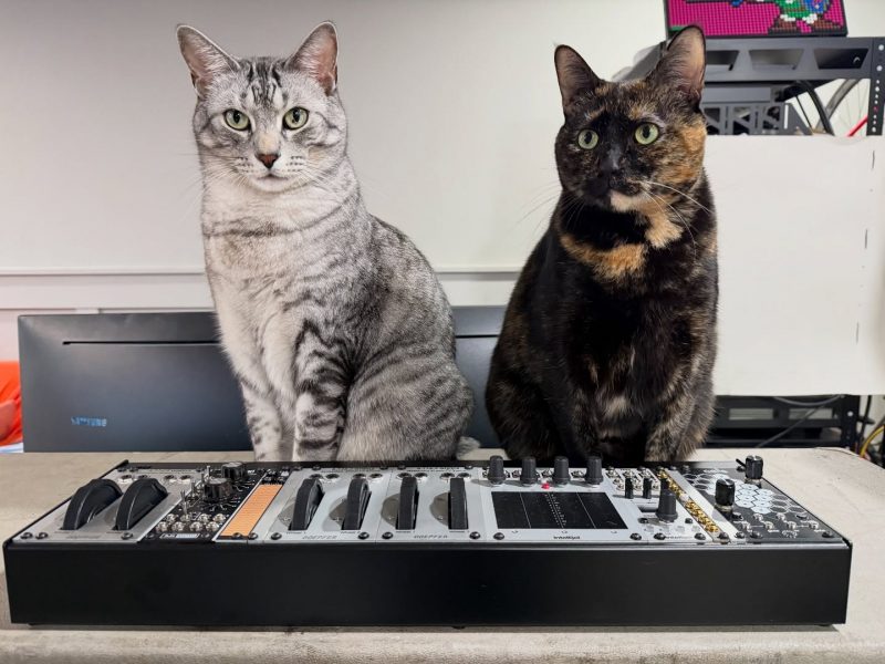 It’s rare that we get to see Haku and Chichiro together, but here they are, purrfectly posed behind a small modular “expression skiff”. We see modules from Doepfer, Intellijel, AJH Synth, a Bela Gliss, and a Cre8audio Cellz.