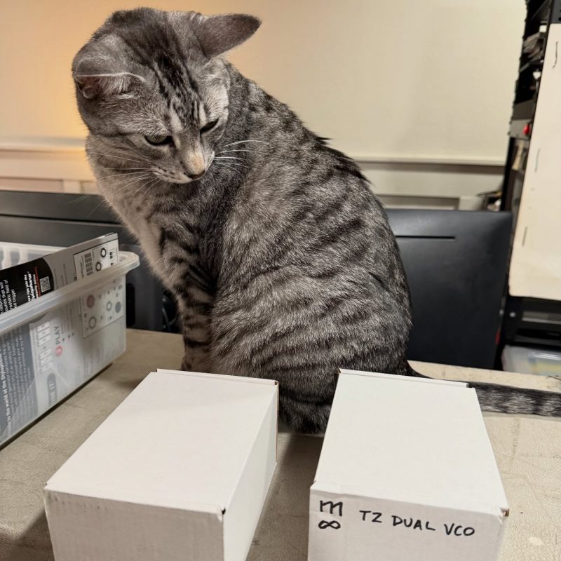 Haku helps his human pal Erik Ribeiro (@eriksuperlazy on Instagram) unbox and set up new modules from Infinite Machinery. Erik got these back when we were all at Knobcon. I, too, am still setting up some of the modules that I acquired there.